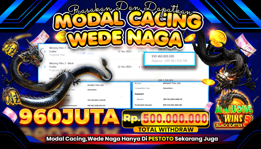 SELAMAT DATANG DI PESTOTO BANDAR SLOT ONLINE, LIVE CASINO, TOGEL ONLINE TERPERCAYA DI INDONESIA DENGAN BONUS TANPA BATAS SETIAP HARI - LAYANAN TRANSAKSI BANK ONLINE 24 JAM. MINIMAL DEPOSIT IDR 5.000,- DAN WITHDRAW IDR 25.000,-